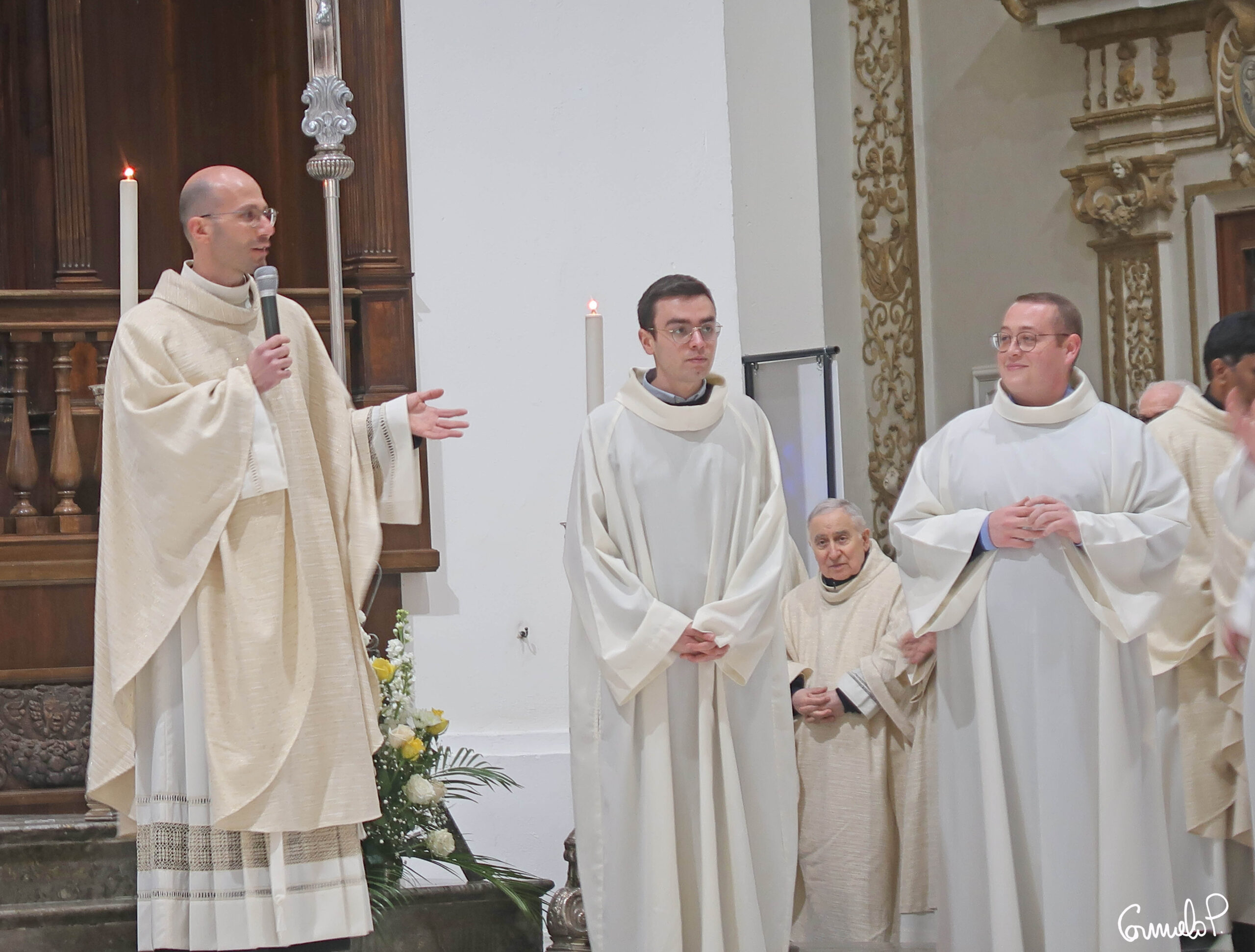 Prima del concedo, il vicario Generale, don Giuseppe Cumbo ha presentato i due seminaristi che il prossimo 24 marzo 2023 – in Cattedrale, nella celebrazione vigiliare della solennità dell’Annunciazione del Signore – saranno ordinati diaconi, Salvatore Ingoglia, della comunità ecclesiale di Castelvetrano e Giuseppe Vecchio della comunità di Palma di Montechiaro; ha, inoltre, presentato alla Chiesa agrigentina Don Anudeep Kumar Pulipati e Don Ashok Kumar Rompicherla, due presbiteri, fidei donum, che presteranno, per un periodo di tre anni, il loro ministero nella nostra Arcidiocesi.