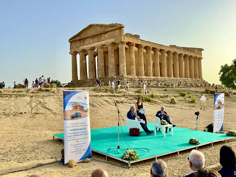 Nello spazio prospicente il lato nord del Tempio della Concordia, con sullo sfondo le colonne doriche è stato presentato, giovedì 22 giugno 2023, il libro “Investigare 5.0, criminologia e criminalistica – Viaggio nel mondo delle indagini”, curato dal Prefetto Vittorio Rizzi, vice capo della Polizia e direttore centrale della Polizia Criminale e dalla professoressa Anna Maria Giannini, ordinario di psicologia all’Università La Sapienza di Roma; il libro si avvale anche dei contributi di 42 autori, tra i massimi esperti, nazionali e internazionali del settore.