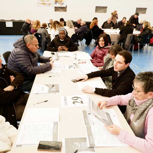 “Un bilancio positivo – dichiara ai nostri microfoni don Carmelo La Magra, referente diocesano del cammino sinodale (vedi video in basso) – perché tante parrocchie o gruppi di parrocchie, insieme con i presbiteri, i laici, i religiosi e le aggregazioni laicali, si sono ritrovati attorno a 43 tavoli, affidati ad altrettanti coordinatori-facilitatori, per porsi in ascolto ciò che lo Spirito suggerisce riguardo alla vita della Chiesa in questo nostro tempo e in questo nostro mondo. Dalla sintesi del lavori di tutti (ogni tavolo ne ha redatta una condivisa dai partecipanti) emergerà una relazione che verrà inviata al comitato centrale del Sinodo per contribuire all’Assemblea sinodale nazionale in programma tra fine marzo e inizio aprile. Nel frattempo – ha spiegato don La Magra – tutti i temi affrontati sono stati riaffidati alle Chiese diocesane affinché si esprimano su aspetti che spaziano in tutta la vita ecclesiale. Sul metodo adottato, ha evidenziato che “non è un dibattito, ma un ascolto continuo e reciproco, dove ascoltando gli altri si affina anche la propria idea, cercando una convergenza illuminata dal magistero della Chiesa e dalla Parola di Dio, senza escludere le voci fuori dal coro, perché magari lo Spirito vuole parlarci con una voce diversa”.