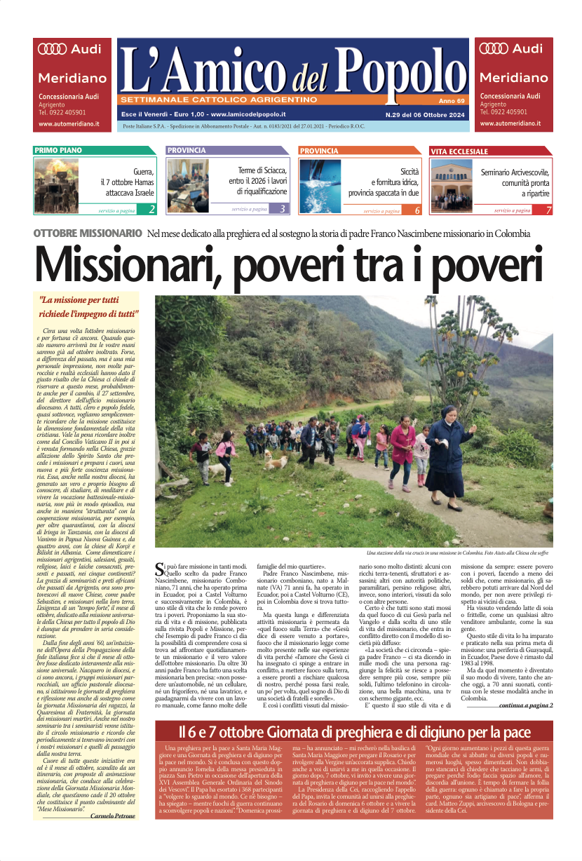 Singola copia digitale del settimanale cattolico agrigentino L’Amico del Popolo n.29/2024