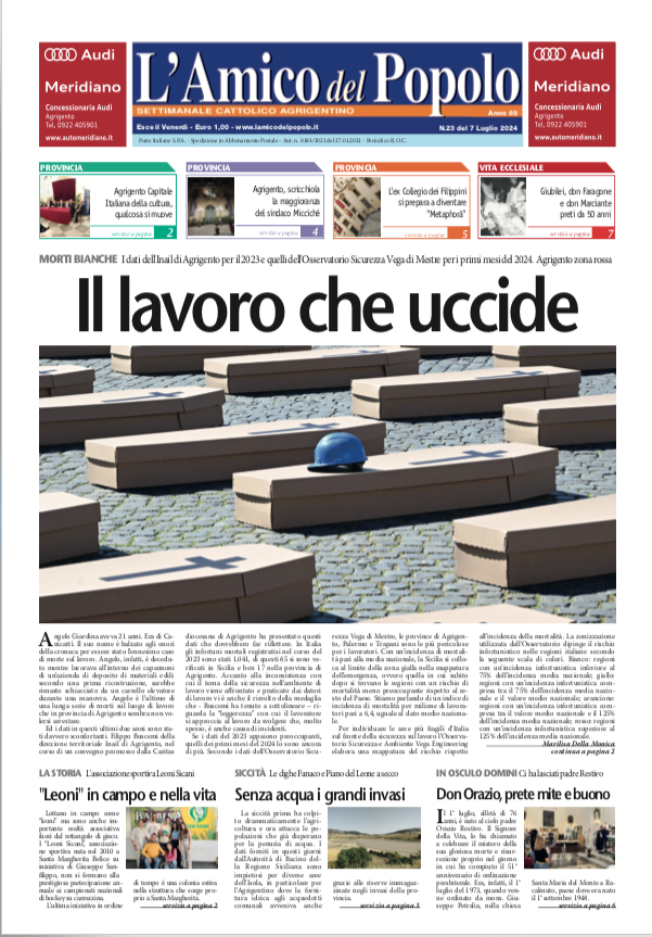 Singola copia digitale del settimanale cattolico agrigentino L’amico del Popolo n. 23/2024