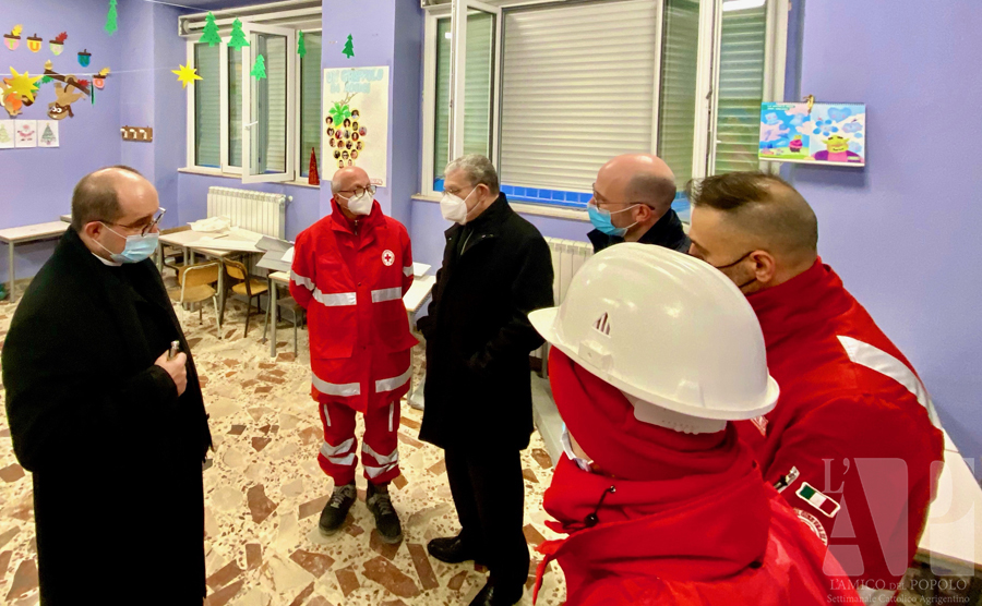 La prima tappa della visita è stata la scuola Primaria “don Bosco” dove, in un’aula, i volontari della Croce Rossa Italiana facevano corona alle bare di Pietro Carmina, Enza Zagarrio e Liliana Minacori. Dopo aver sostato in preghiera, mons. Damiano ha benedetto le salme prima di essere trasferite presso l’ospedale di Agrigento ed ha rivolto parole di ringraziamento a quanti si stanno impegnando a liberare i vicoli del quartiere “Mastri Minici” dalle macerie e lottano contro il tempo nella speranza di trovare qualcuno dei sei dispersi ancora in vita.