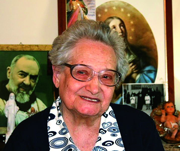 - La Vergine Maria. Il legame con la Vergine è il motore che la mette in cammino per le strade del mondo. Sono mitici i suoi viaggi a Lourdes. La Vergine per lei è Madre che ha cura dei suoi figli. È modello della Chiesa che accoglie, concepisce e incarna la Parola nella storia degli uomini. È sempre sua compagna di viaggio nel servizio della Chiesa: in macchina a secondo della velocità che si raggiungeva bisogna dire l’Ave Maria o il Salve Regina. Noi dinanzi a questi gesti quasi infantili sorridevamo. Andando avanti nel tempo scopri come i legami di Amore siano fatti di piccoli gesti che aiutano a condividere tutto. E lei con la Vergine condivideva tutto, anche il saluto Ave.