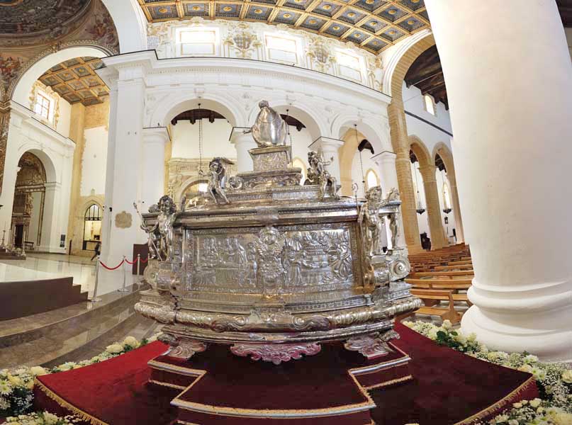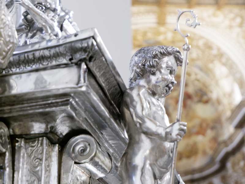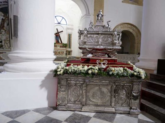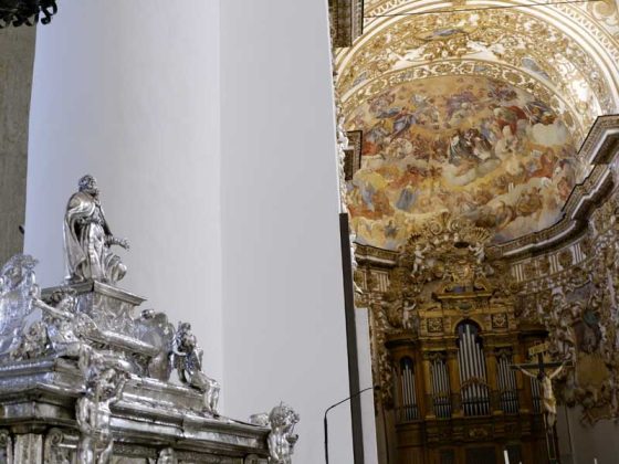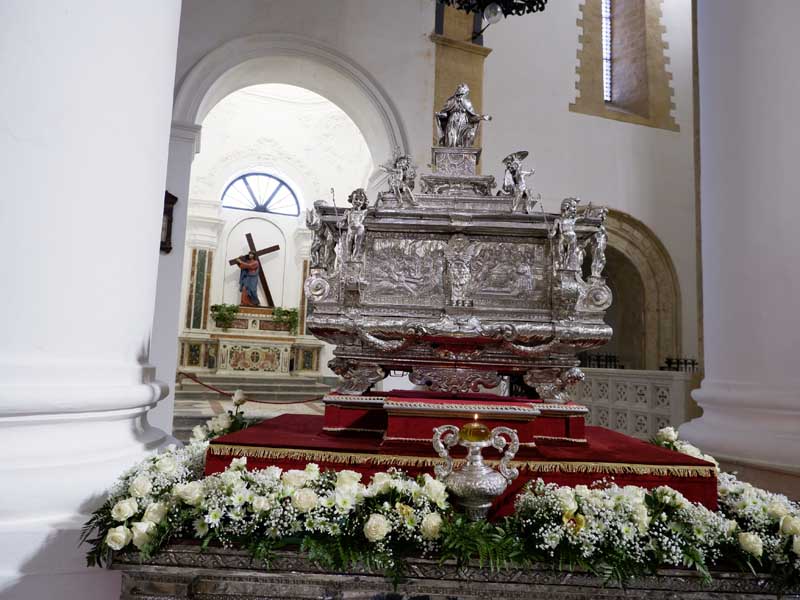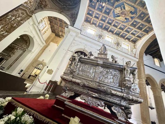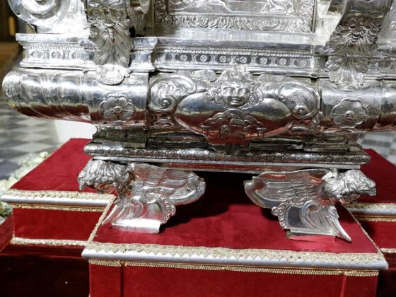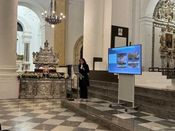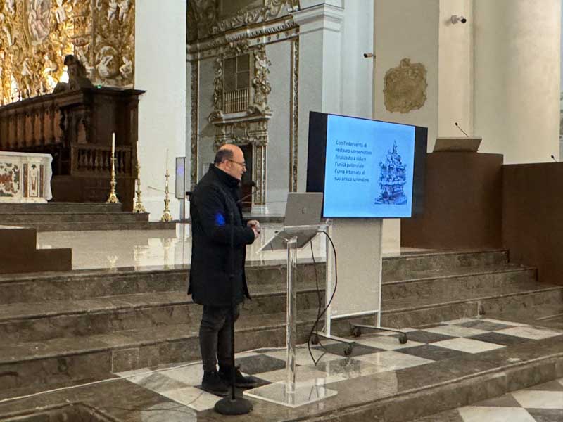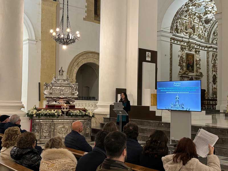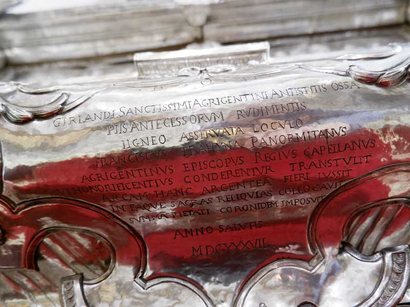 Il 21 febbraio 2025 è un giorno che passerà agli annali della storia della Chiesa e della città di Agrigento per l’avere restaurato e riconsegnato al culto e alla fruizione la monumentale urna argentea di san Gerlando, dopo i furti sacrileghi; essa contiene le reliquie di Colui che riorganizzò e rievangelizzò la diocesi di Agrigento dopo l’occupazione musulmana durata dall’829 al 1086 e in sei anni edificò l’episcopio e la cattedrale che dedicò alla Beata Maria Vergine Assunta in Cielo, a San Giacomo Maggiore (perché Agrigento era tornata cristiana il 25 Luglio del 1086) e tutti gli altri apostoli. Proprio nella Cattedrale di Agrigento, dalla cui cattedra, Gerlando annunciò il Vangelo, si sono tenuti due momenti significativi: nella mattinata la conferenza stampa che ha illustrato i lavori di restauro e la riconfigurazione potenziale dell’opera dopo i furti. Un momento di vera emozione e di apprezzamento dell’opera degli artigiani cesellatori contemporanei. L’urna, oltre a custodire i resti mortali del patrono della città e dell’Arcidiocesi di Agrigento, rappresenta il monumento della fede cristiana e un patrimonio artistico inestimabile. Preziosa testimonianza non solo del profondo sentimento religioso del popolo agrigentino verso il Patrono, ma anche la dimostrazione di una committenza colta e illuminata, che si rivolge quasi sempre a noti artisti per la loro esecuzione. L’opera, che presenta insieme le tipologie dell’arca reliquiaria e della macchina processionale, venne realizzata su disegno del grande pittore monrealese Pietro Novelli. L’urna, una cassa lignea scolpita e rivestita con argento cesellato, sbalzato e inciso fu Commissionata dal Vescovo Francesco Traina nel 1635, realizzata nel 1639 dal’argentiere Michele Ricca e lo scultore Giancola Viviano.