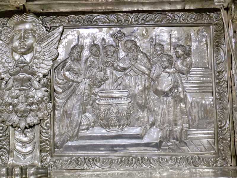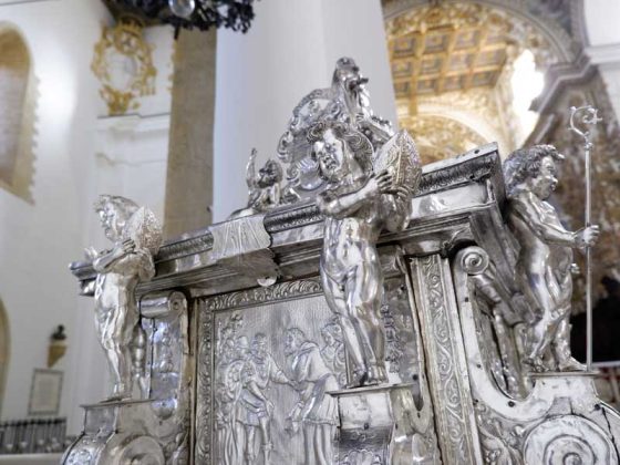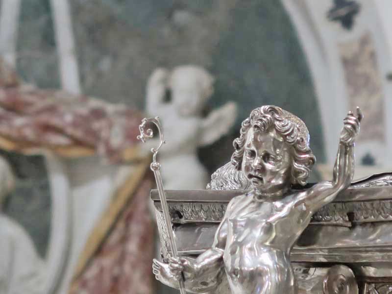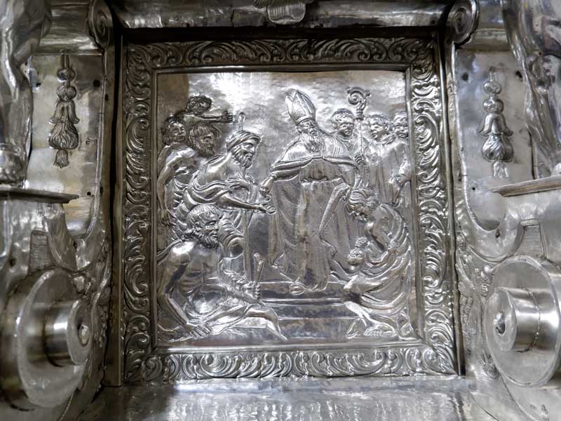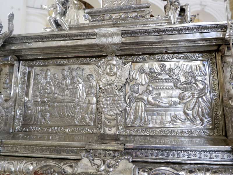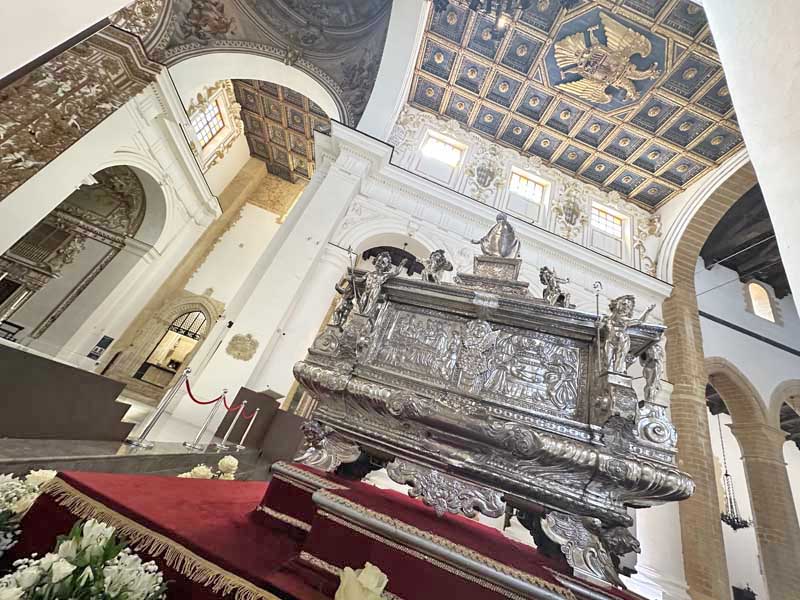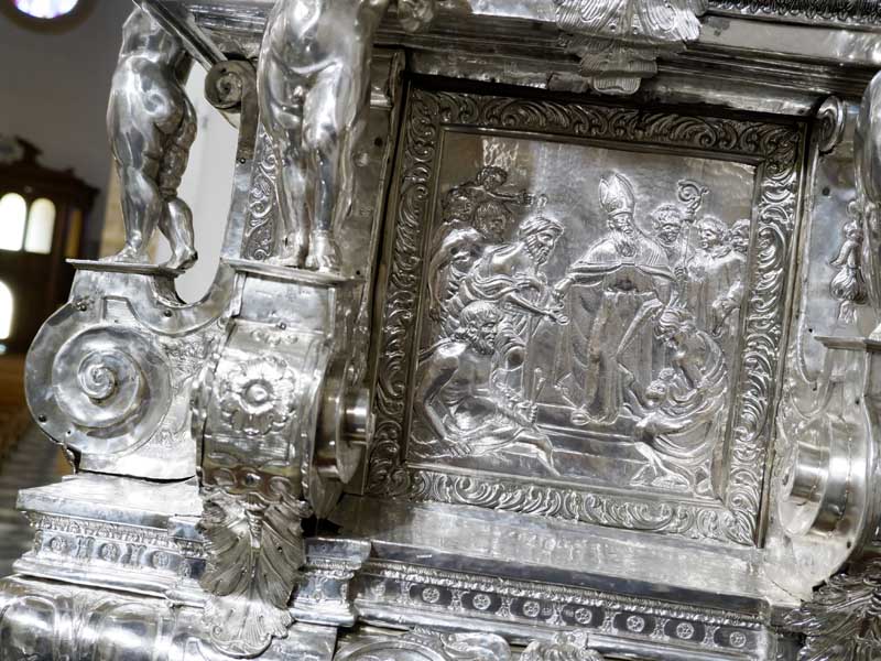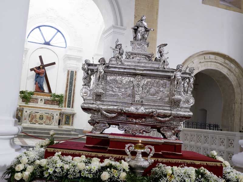 Il 21 febbraio 2025 è un giorno che passerà agli annali della storia della Chiesa e della città di Agrigento per l’avere restaurato e riconsegnato al culto e alla fruizione la monumentale urna argentea di san Gerlando, dopo i furti sacrileghi; essa contiene le reliquie di Colui che riorganizzò e rievangelizzò la diocesi di Agrigento dopo l’occupazione musulmana durata dall’829 al 1086 e in sei anni edificò l’episcopio e la cattedrale che dedicò alla Beata Maria Vergine Assunta in Cielo, a San Giacomo Maggiore (perché Agrigento era tornata cristiana il 25 Luglio del 1086) e tutti gli altri apostoli. Proprio nella Cattedrale di Agrigento, dalla cui cattedra, Gerlando annunciò il Vangelo, si sono tenuti due momenti significativi: nella mattinata la conferenza stampa che ha illustrato i lavori di restauro e la riconfigurazione potenziale dell’opera dopo i furti. Un momento di vera emozione e di apprezzamento dell’opera degli artigiani cesellatori contemporanei. L’urna, oltre a custodire i resti mortali del patrono della città e dell’Arcidiocesi di Agrigento, rappresenta il monumento della fede cristiana e un patrimonio artistico inestimabile. Preziosa testimonianza non solo del profondo sentimento religioso del popolo agrigentino verso il Patrono, ma anche la dimostrazione di una committenza colta e illuminata, che si rivolge quasi sempre a noti artisti per la loro esecuzione. L’opera, che presenta insieme le tipologie dell’arca reliquiaria e della macchina processionale, venne realizzata su disegno del grande pittore monrealese Pietro Novelli. L’urna, una cassa lignea scolpita e rivestita con argento cesellato, sbalzato e inciso fu Commissionata dal Vescovo Francesco Traina nel 1635, realizzata nel 1639 dal’argentiere Michele Ricca e lo scultore Giancola Viviano.