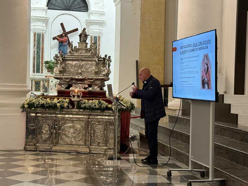 “Celebrare il Patrono di una città – ha detto don Giuseppe Pontillo, parroco della Cattedrale e direttore dell’ufficio BBCCEE dell’Arcidiocesi, significa asserire solennemente che egli, oltre che nella fede, è pure il Pater civitatis, il fondatore della Città stessa. Gerlando è il fondatore della città perché solo Dio può essere garante vero del bene comune che è il vero fine dello stare insieme. La Città non è un ammasso d’individui ma una comunità perché i cittadini hanno una comunanza di fini e la comunanza di fini richiede un fondamento indisponibile che solo Dio può garantire. I vescovi patroni hanno difeso le loro città da nemici e carestie; talvolta, le hanno tenute insieme nelle difficoltà e, talvolta, perfino governate. Quando ciò non è avvenuto, essi sono lo stesso Pater civitatis perché non c’è legame che possa sostituire per verità e profondità quello religioso. La festa del Patrono – ha detto don Pontillo – ricorda che le questioni di quaggiù non si risolvono senza l’aiuto da lassù. Non si dissodano i terreni incolti se prima non si dissodano le anime. Chi non guarda in verticale finisce per non guardare nemmeno in orizzontale”.