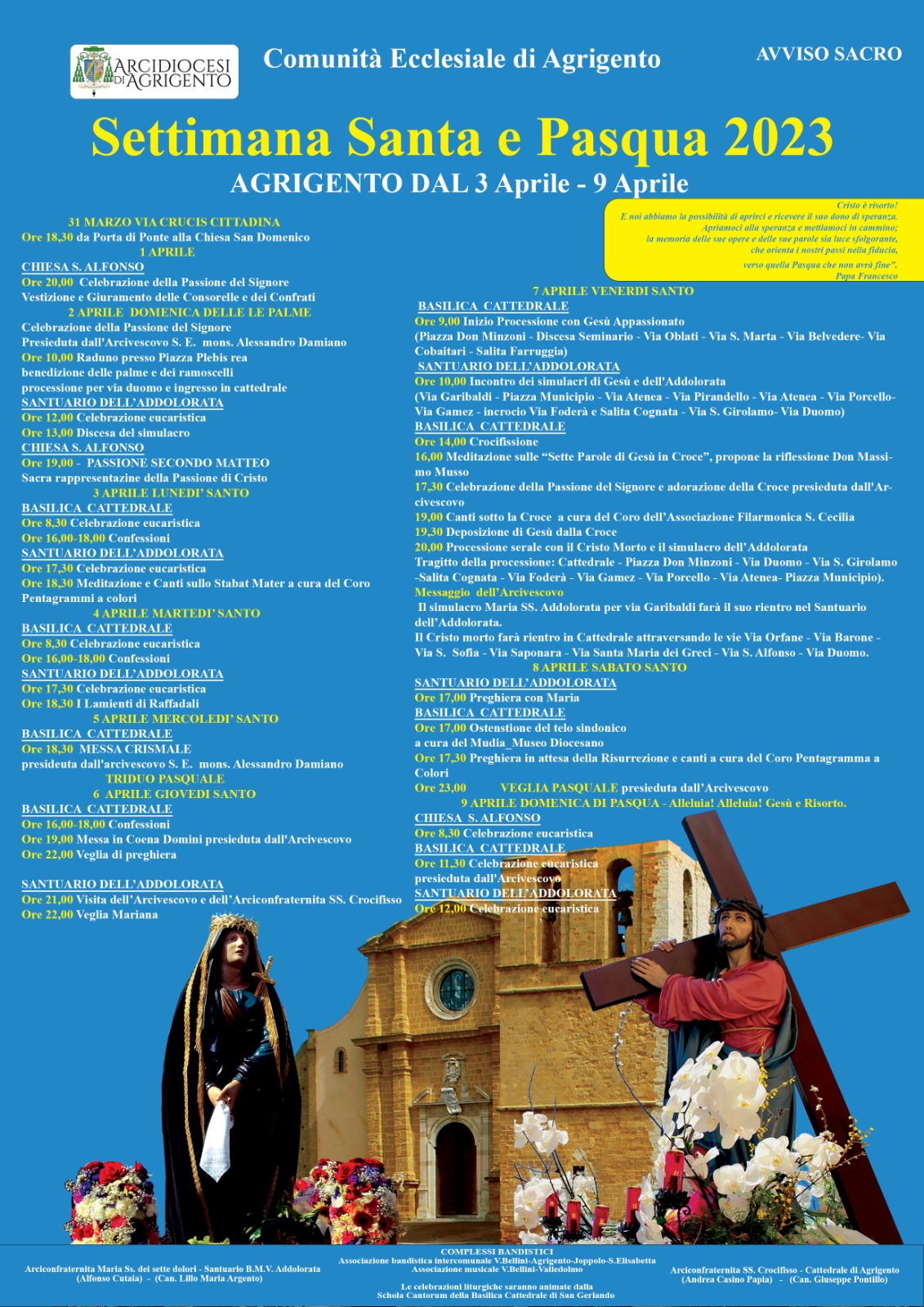 - È stato reso pubblico il programma dei riti della Settimana Santa e Pasqua 2023 nella Comunità ecclesiale di Agrigento dal 3 al 9 Aprile.