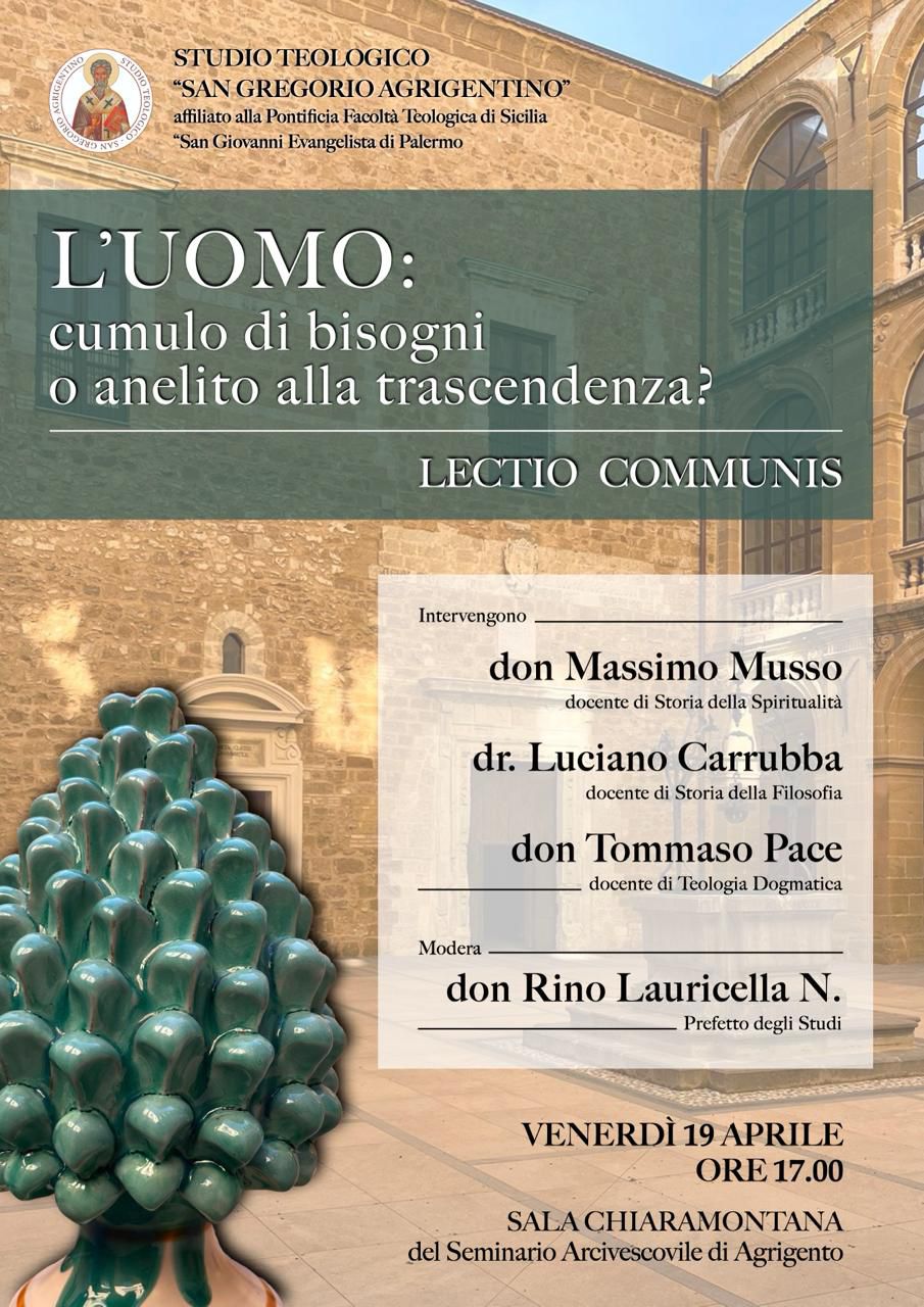 Lo Studio teologico “San Gregorio Agrigentino” invita a partecipare alla Lectio communis che si terrà il 19 aprile, alle ore 17.00, nella sala Chiaramontana del Seminario Arcivescovile di Agrigento.
