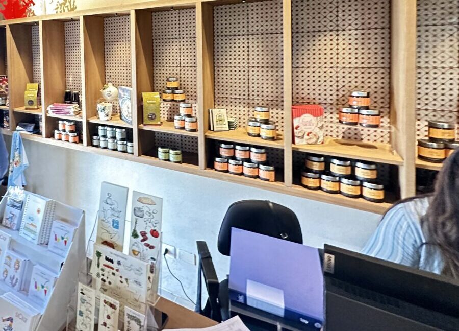 dedicato ai prodotti Diodoros e alle eccellenze del territorio, affidato a CoopCulture, concessionario dei servizi aggiuntivi del Parco. Dagli scaffali si affacciano discreti i pesti, le conserve, le confetture, il miele, l’olio e il vino nati nella Valle; e ancora, le erbe aromatiche e le spezie, gli infusi, le polveri, le confezioni di mandorle e pistacchi. Quale miglior souvenir da portare con sé?