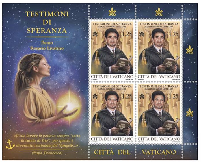 “In questo anno giubilare, che ci chiama a essere “Pellegrini di Speranza”, il Servizio Poste e Filatelia intende celebrare attraverso un ciclo di quattro emissioni filateliche personalità che, con la loro vita e il loro operato, hanno offerto una luminosa testimonianza di speranza. La prima di queste emissioni è dedicata al beato Rosario Livatino, un magistrato il cui impegno nella lotta contro la mafia e l’incrollabile adesione ai valori cristiani hanno tracciato un cammino di giustizia e coraggio.”
