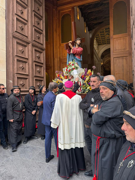 Pubblichiamo il testo della riflessione che l’arcivescovo di Agrigento, mons. Alessandro Damiano, ha pronunciato sul sagrato della Chiesa San Domenico durante la processione notturna del Venerdì Santo 2025.