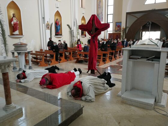 A Lampedusa, durante la celebrazione – scandita dai  tre momenti della Liturgia della Parola, l’Adorazione della Croce e la  Comunione eucaristica – mons. Damiano, al termine della proclamazione delle letture e prima della proclamazione del Vangelo della Passione ha salutato la Comunità ecclesiale ed introdotto al racconto della Passione. “È da qualche mese – ha detto –  che tentavo di venire  trovare questa comunità, diverse vicende – un po’ il mare un po’ la pandemia – hanno impedito questa visita. Questa volta,  ha detto ai presenti ,  ci siamo riusciti. Con i vostri parroci (don Carmelo La Magra e don Fabio Maiorana n.d.r.) abbiamo deciso di condividere questa Pasqua del Signore… Siamo al centro del Sacro Triduo – ha proseguito – , la parola del profeta Isaia (Is 52,13-53,12) ci ha introdotti bene nel Servo sofferente (II brano è costituito dalla illustrazione profetica di Gesù come servo di Dio innocente e fedele fino alla morte n.d.r.) Tra poco – ha proseguito –  la parola del Vangelo offrirà alle nostre orecchie e al nostro cuore la narrazione della Passione del Signore… Accostiamoci a questa pagina del Vangelo – ha esortato i presenti – con spirito di contemplativi ricordandoci che è quel passaggio – come per Gesù Cristo –  che ci fa giungere alla risurrezione”.