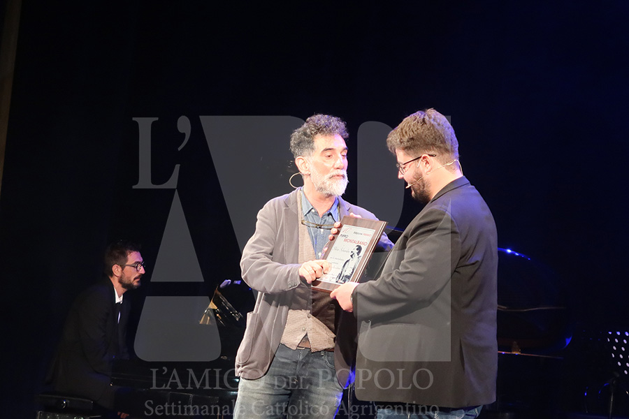La serata ha visto anche la partecipazione straordinaria di Lello Analfino in coppia con un inedito Silvio Schembri, che – per ricordare l’artista ma anche l’Amico educatore nell’oratorio della parrocchia S. Teresa di Agrigento, dove aveva conosciuto Pippo Montalbano che lì, nei ritagli di tempo, svolgeva la sua “missione” di animatore dei ragazzi educandoli al vero e al bello – si è improvvisato attore e cantante. E così, accompagnati al al pianoforte da Alessandro Patti, hanno intrattenuto i presenti con brani del repertorio di Analfino e una “riflessione” – con testi di Leonardo Sciascia tratti da “il lungo viaggio” – su un tema di attualità: l’immigrazione/emigrazione; delle gente che arriva sulle nostre coste e dei tanti nostri giovani ieri, come oggi, costretti a lasciare la nostra terra.