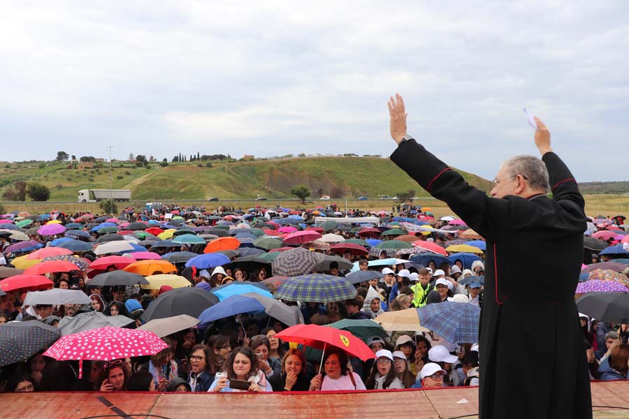 Un tripudio di musica, colori ed emozioni alla Marcia per la Legalità. Da Piano San Gregorio, nella Valle dei Templi, è partita una carovana in festa nel ricordo della visita ad Agrigento di Papa Giovanni Paolo II, avvenuta il 9 maggio del 1993, del suo durissimo “grido” (ascolta qui) invitando i mafiosi a conversione: “Una volta Dio ha detto: Non uccidere. Nessun uomo, nessuna associazione umana, nessuna mafia può cambiare e calpestare questo diritto santissimo di Dio… Nel nome di Cristo crocifisso e risorto… mi rivolgo ai responsabili: convertitevi. Un giorno arriverà il giudizio di Dio”. Da quel giorno sono trascorsi esattamente 30 anni. Eppure quelle parole sono ancora vive e continuano a fiorire nelle coscienze dei giovani. Il grido sgorgato dal cuore del Papa è risuonato tra le colonne doriche. Cinquemila studenti radunati nel nome della legalità hanno regalato momenti di animazione e di riflessione, coordinati dal direttore dell’ufficio per l’insegnamento della religione cattolica, don Enzo Sazio e dai responsabili della Consulta provinciale studentesca, nell’ambito delle celebrazioni di commemorazione del trentennale organizzate dall’Arcidiocesi di Agrigento. Neanche la pioggia ha fermato la marcia.